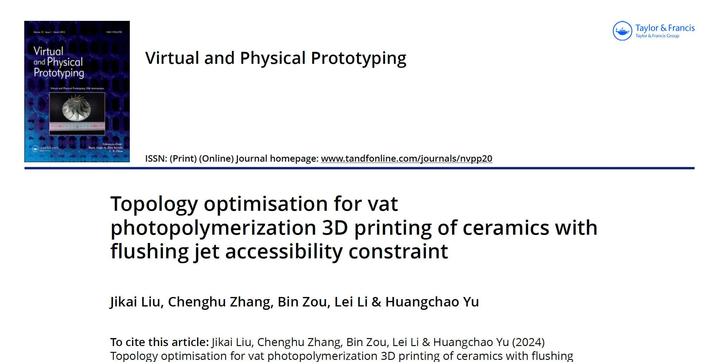 此前,山東大學(xué)聯(lián)和國(guó)防科技大學(xué)在《Virtual and Physical Prototyping》 ( IF 10.2 )發(fā)表了題為“Topology optimisation for vat photopolymerization 3D printing of ceramics with flushing jet accessibility constraint”的研究,提供了一種專用于光固化陶瓷3D打印的晶格-固體混合結(jié)構(gòu)的多尺度拓?fù)鋬?yōu)化方法,并提出了新的清洗射流可及性約束,旨在有效去除殘留在晶格結(jié)構(gòu)中未固化漿料。