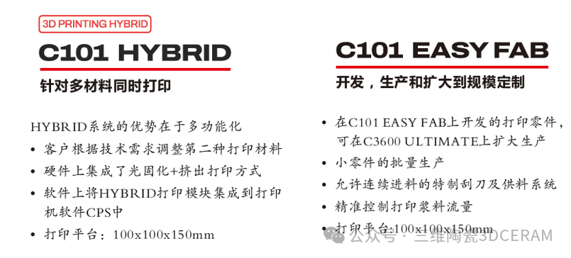 C100Easy標(biāo)準(zhǔn)平臺(tái)為100*100*150mm的單激光器單材料光固化陶瓷打印機(jī),可以選配多材料打印套件、60mm的打印小平臺(tái)等,非常適合實(shí)驗(yàn)室場(chǎng)景的使用。